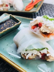 9. Chicken Summer Rolls with Garlic Honey Soy Sauce