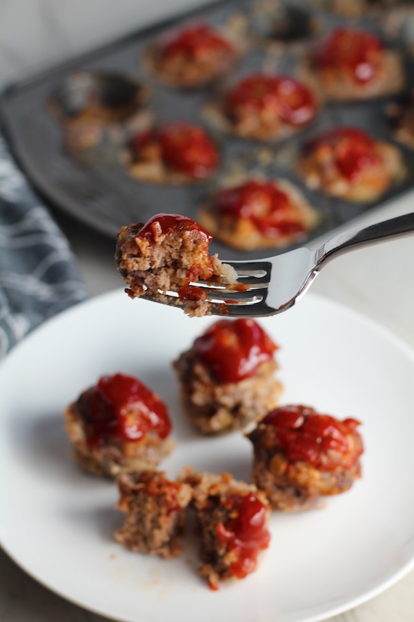 Goodness in Every Bite. The mini muffins are about 1-2 bites each. That means you get the crunchy meatloaf outside with a bit of the delicious ketchup glaze in every bite! No more fighting for the ends of the meatloaf.