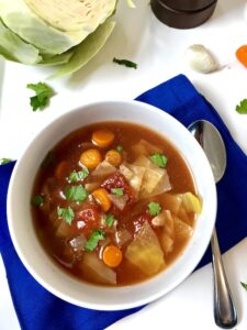 Comfort soups can be good for you too. This Slow Cooker Detox Cabbage Soup is really easy, low-calorie, veggie-packed, which is a great way to get some healthy in between the holiday feastes! This soup is light, but filling with cabbage, tomato, carrots, onion, and garlic. It is also so easy because it is made in the slow cooker, but you can make it faster on the stove as well. It is so good for you and so low calorie, that this makes a great dinner, lunch the next day, and snack whenever you get hungry!