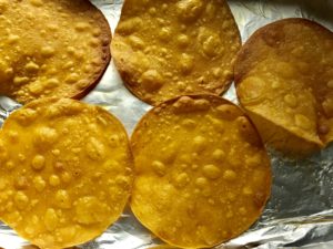 - Preheat oven to 300 degrees. Place 4 tortillas on a sheet pan, brush with olive oil, and lightly salt. Heat for 10minutes, then flip tortillas over and cook for another 10-15 or until crisp.