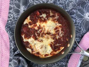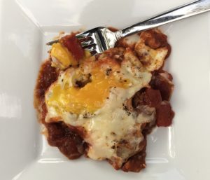 Baked Eggs in Spicy Tomato Pepper Sauce & Gruyere Cheese