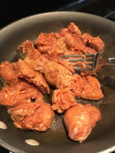 - Remove chorizo from casings and put into heated pan and lightly oiled large sauté pan. Add chorizo and break it up with a fork or spatula into small bits and cook until browned throughout.