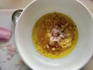 Finely dice 1 Tbls shallot.