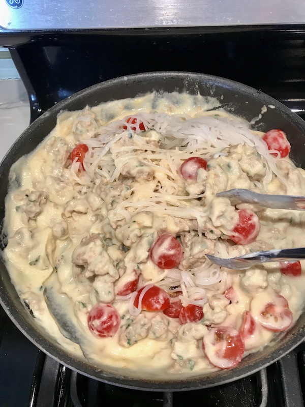 And so, I bring you my latest recipe, Italian Sausage Cauli-Cream Noodles!