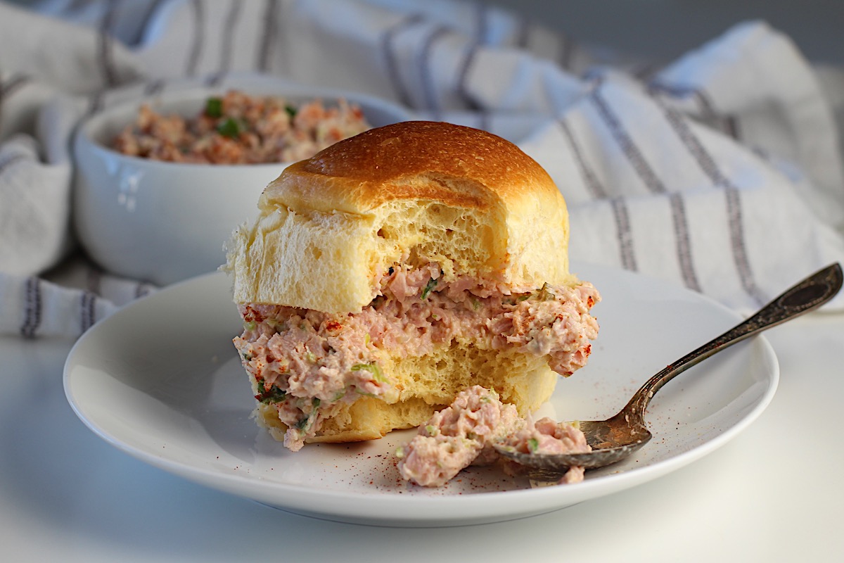 This Old fashioned ham salad is a recipe that I grew up with in the midwest, so it’s both delicious and nostalgic. It’s reminiscent of a deli-style salad and has a savory, slightly salty taste with a hint of sweetness from pickle relish. The ham provides a meaty flavor while the cream cheese and mayonnaise dressing adds creaminess and richness. Mustard, paprika, scallions, and celery give more layers of flavor and texture.